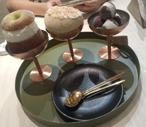 Le buno also offers many different flavours, including flavour blends, and a variety of ice cream-related menu items, such as gelato puffs and gelato milkshakes. An example of a flavour blend is coconut and thai milk tea. They also use fresh, high-quality and local ingredients, and as a result, the ice cream feels healthier.